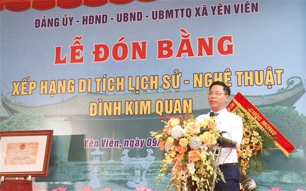 Dự buổi Lễ có đồng chí Đặng Thị Huyền- Phó Bí thư Huyện ủy, Chủ tịch UBND huyện; Lãnh đạo BQL di tích danh thắng Hà Nội; lãnh đạo Phòng Văn hóa và Thông tin huyện; lãnh đạo một số phòng, ban, ngành, đoàn thể của Huyện; lãnh đạo Đảng ủy- HĐND- UBND- Uỷ ban MTTQ xã Yên Viên và cấp ủy, chính quyền cùng đông đảo nhân dân thôn Kim Quan.