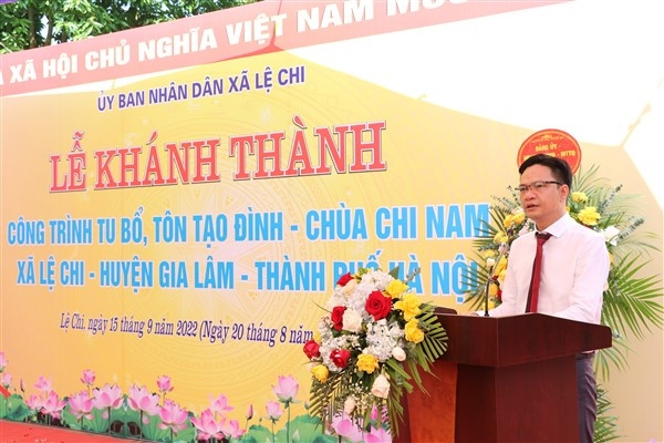 Sáng ngày 15/09/2022, tại thôn Chi Nam, UBND xã Lệ Chi tổ chức Lễ khánh thành công trình tu bổ, tôn tạo Đình- Chùa Chi Nam xã Lệ Chi. Dự buổi lễ có đồng chí Lê Anh Quân- Thành uỷ viên, Bí thư Huyện uỷ; đồng chí Nguyễn Khắc Định- Uỷ viên BTV huyện uỷ, Phó Chủ tịch HĐND huyện; đồng chí Nguyễn Đức Hồng- Uỷ viên BTV huyện uỷ, Phó Chủ tịch UBND huyện.
