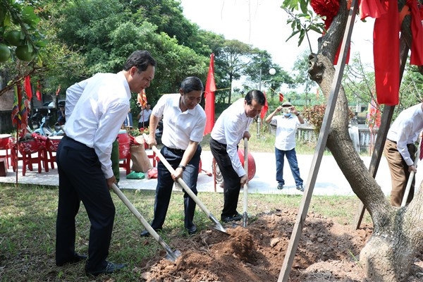Lãnh đạo huyện Gia Lâm và xã Lệ Chi trồng cây lưu niệm