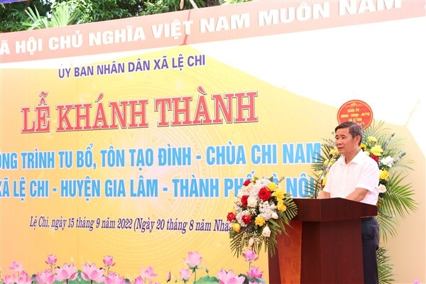 Tại buổi lễ, lãnh đạo huyện, xã cùng nhân dân thôn Chi Nam đã cắt băng khánh thành công trình tu bổ, tôn tạo Đình - Chùa Chi Nam.