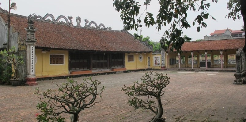 Đại đình có kiến trúc khá vững chắc được làm theo kiểu vì chồng rường giá chiêng, bốn hàng chân cột gian giữa có đường kính 60cm đứng vững chãi trên chân đá tảng. Không gian của đại đình thoáng, rộng để thoả mãn chức năng là nơi diễn ra các nghi lễ thờ thần hoàng và là nơi hội họp sinh hoạt văn hoá. Đại đình trước kia hệ thống cửa làm theo kiểu “thượng sơ hạ mật” chấn song con tiện do điều kiện chiến tranh đã bị phá hỏng nay được thay thế bằng cửa ván ở ba gian giữa và tường xây ở bốn gian hai bên.